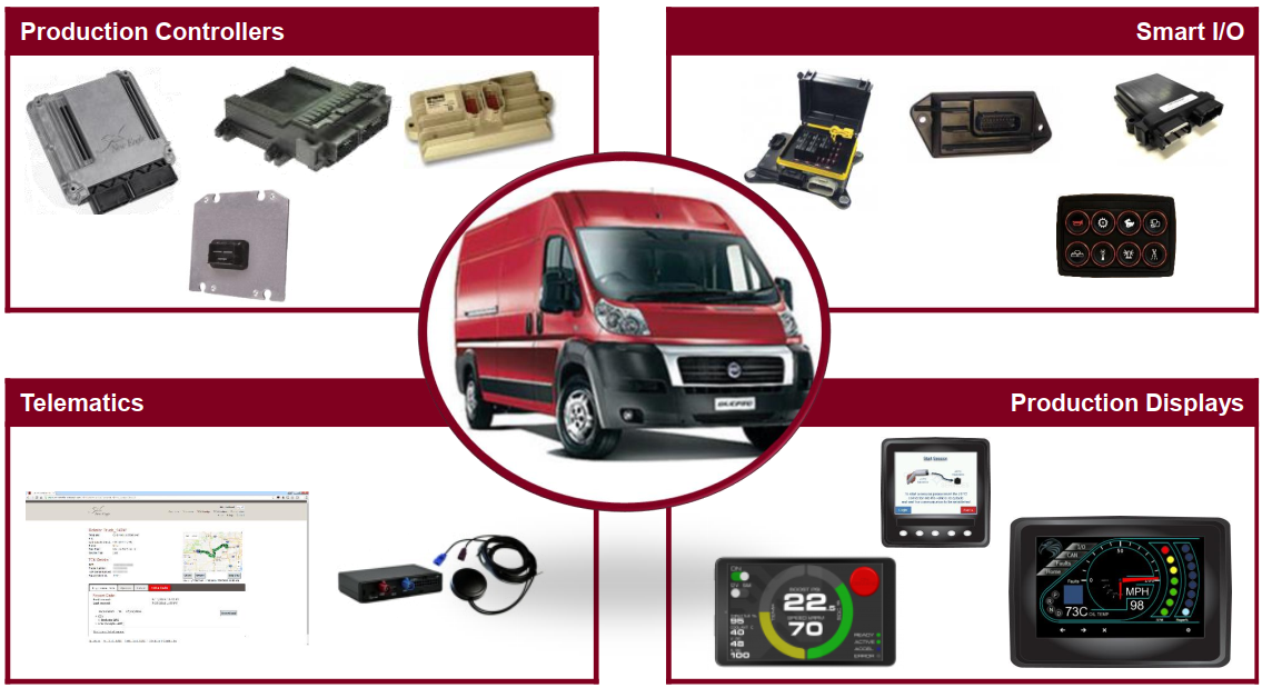 硬件產(chǎn)品系列有快速原型控制模塊、顯示模塊、Smart I/O模塊和Telematics無線通訊模塊。